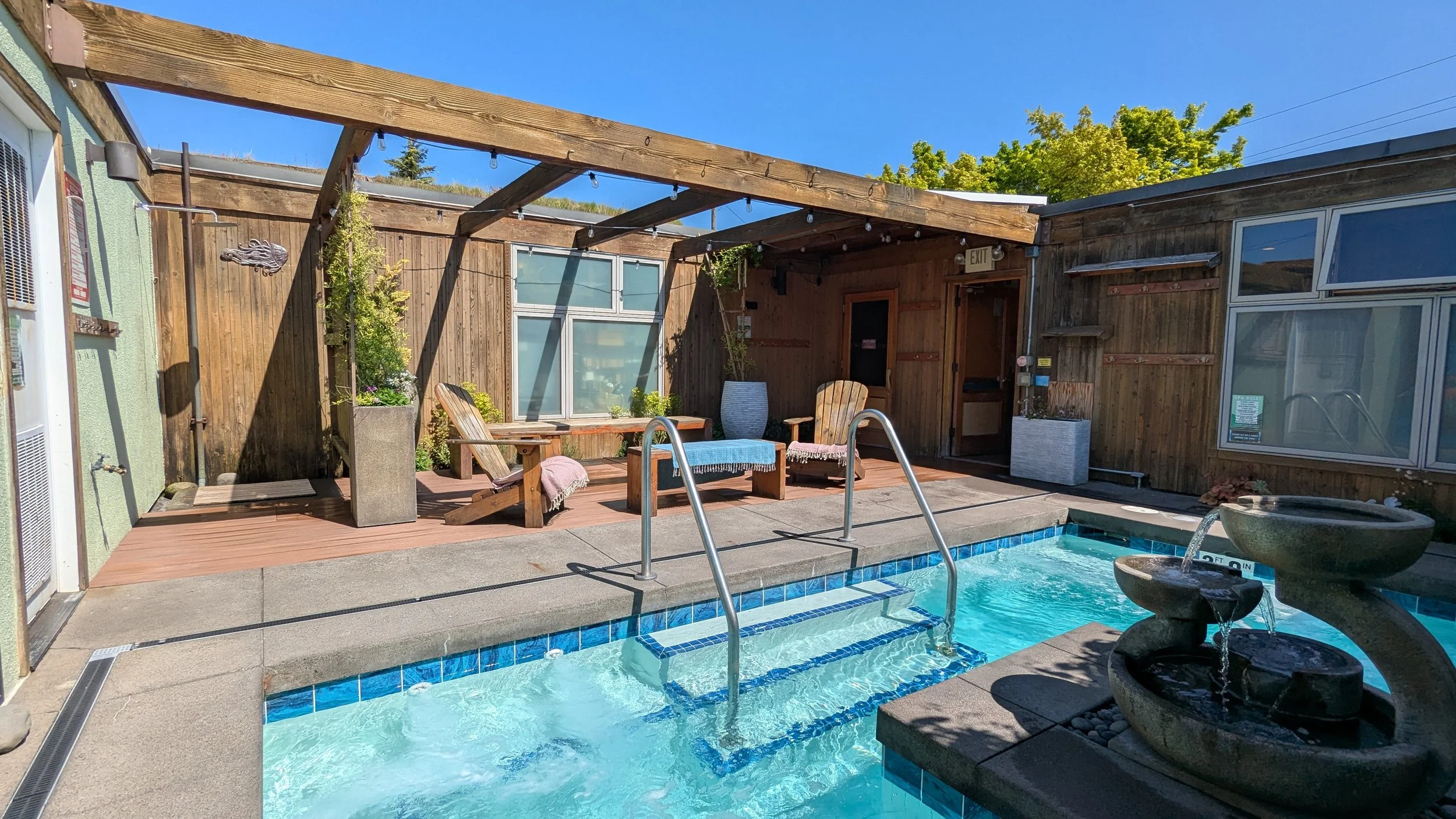 We are a clothing-optional bathhouse; all bodies and all genders. Bathhouse appointments include access to showers, bathrooms, and locker room our open-air courtyard with a saltwater tub, dry sauna, cold-shower, showers, and locker room.